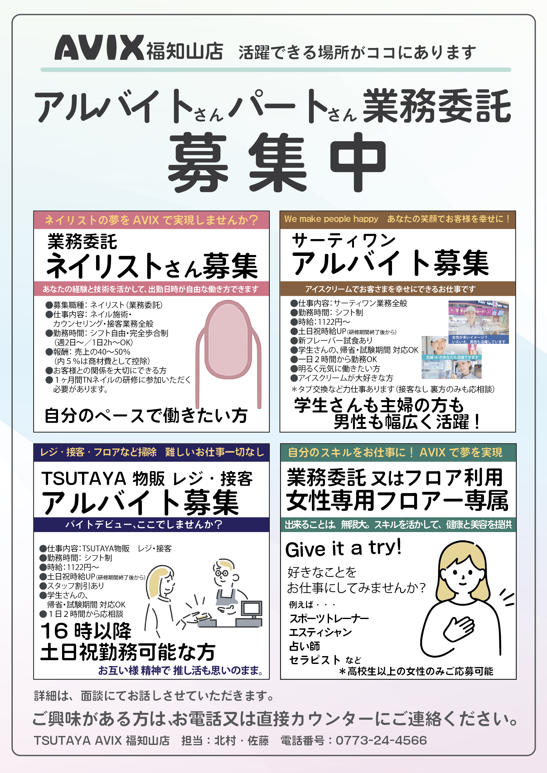 アルバイトさん、パートさん、業務委託さん募集